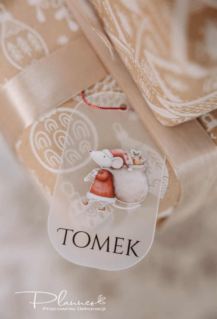 Zawieszki na prezent „Myszki” to uroczy dodatek, który sprawi, że każdy upominek nabierze wyjątkowego charakteru. Wykonane z wysokiej jakości folii z pełnokolorowym nadrukiem, zachwycają starannością wykonania i ciepłym, świątecznym klimatem. Każda myszka ma swój niepowtarzalny wzór, co pozwala dopasować zawieszkę do stylu i osobowości obdarowywanej osoby. To drobny detal, który dodaje prezentom magii i radości.