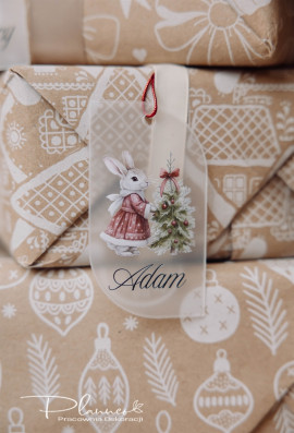 Personalizacja upominków – Na zawieszkach znajduje się miejsce na wpisanie imienia, co ułatwia oznaczenie prezentów. Dzięki temu każda paczka staje się bardziej osobista i dopracowana. Wpisane imię wygląda elegancko w połączeniu z ilustracjami, tworząc harmonijną całość. To detal, który doceni każdy obdarowany.