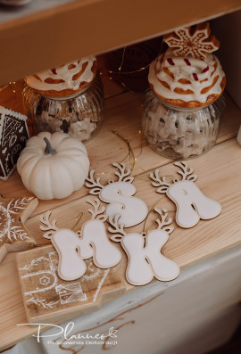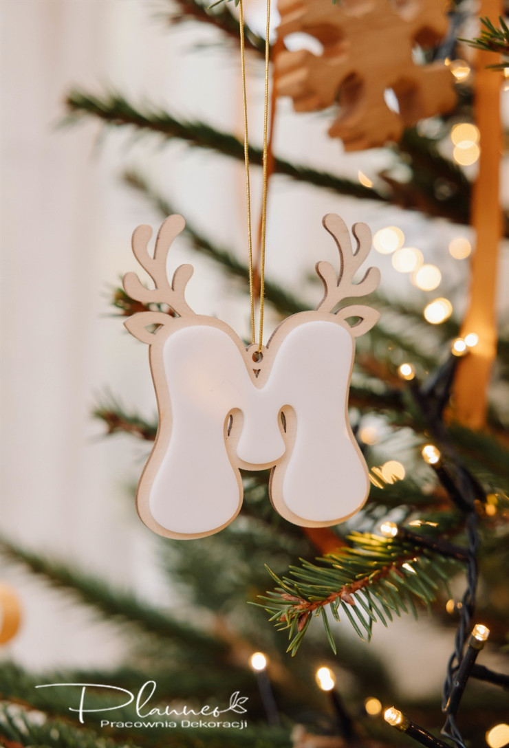 Bombki „Literki z rogami” to uroczy akcent, który wprowadzi do wnętrza wyjątkowy, rodzinny klimat. Drewniane tło i mleczna plexi tworzą efekt ciepła i elegancji, a personalizacja sprawia, że każda ozdoba ma swoją historię. Doskonale prezentują się w świetle lampek choinkowych, odbijając delikatny blask. To dekoracja, która zachwyci wszystkich domowników i gości, tworząc świąteczny nastrój pełen uroku.