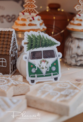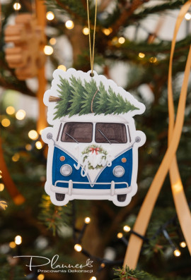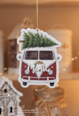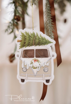 Świąteczny design z nutą retro – Klasyczny samochód z choinką na dachu to motyw, który wprowadza wyjątkowy, nostalgiczny nastrój. Realistyczny nadruk, ozdobiony delikatnym imieniem z mlecznej plexi, tworzy elegancką i oryginalną całość. To dekoracja, która idealnie sprawdzi się na choince, w stroiku lub jako zawieszka na prezent. Świetnie pasuje do stylu boho, vintage i tradycyjnych aranżacji świątecznych.