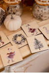 Zestaw 6 wyjątkowych wzorów – Każda podkładka przedstawia inny motyw – gąski w świątecznych strojach, zimowe wieńce i choinki. Zestaw idealnie komponuje się ze świąteczną zastawą i sprawia, że nawet codzienna kawa staje się częścią magicznego rytuału.