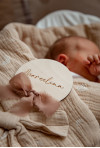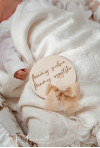 Przykładowe napisy: Witaj na świecie, już jestem, nasz cały świat, nasze małe szczęście, córeczka, synek, imię dziecka itp.