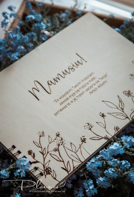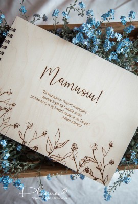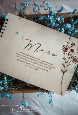 Piękny album na zdjęcia dla Mamy, posiadający 20 kartek umożliwiających wklejanie fotografii. Każda z kartek przełożona jest białą bibułą.