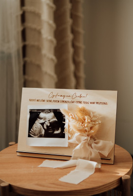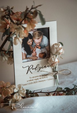 Kolor na zdjęciach to naturalne drewno, imię dziecka mleczna plexi.