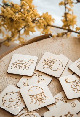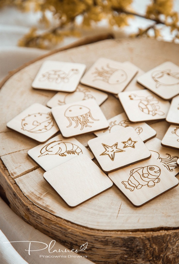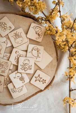 Wyjątkowe drewniane karty Memory świat podwodny - wykonane z wysokiej jakości sklejki 3 mm.
