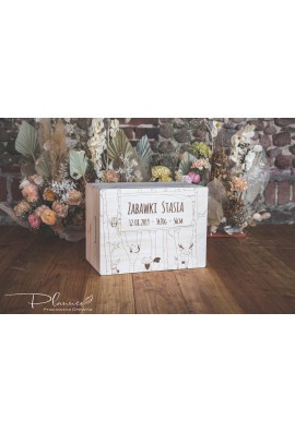 Wyjątkowa grawerowana drewniana skrzynka na zabawki - idealnie ozdobi każdy dziecięcy pokoik!
