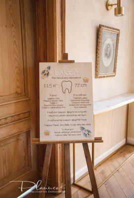 Kolor na zdjęciach to naturalne drewno, wielkość 50x70. Napis imienia oraz cyferka ząbka z mlecznej plexi.