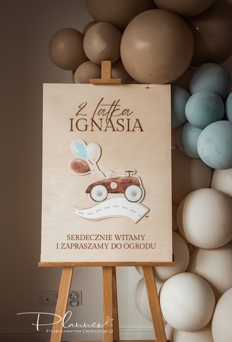 Wyjątkowa tablica powitalna, wykonana z wysokiej jakości sklejki o grubości 6 mm.