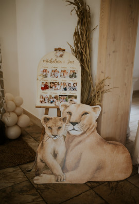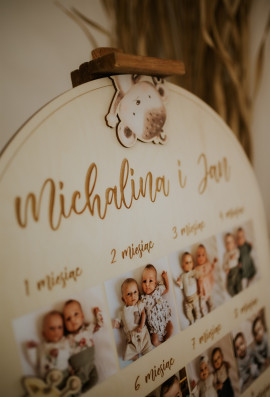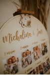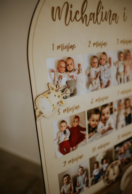 Wyjątkowa tablica do zdjęć Waszego dziecka, wykonana z wysokiej jakości sklejki o grubości 6 mm. Do tablicy dołączone są 3 nadrukowane na sklejce zwierzątka z safari, które możecie umieścić w dowolnym miejscu.