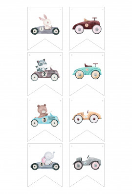 Wzory do wyboru: Zając, Szop, Miś, Słoń, Brązowe autko, Niebieskie autko, Żółte autko, Szare Autko.