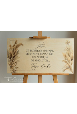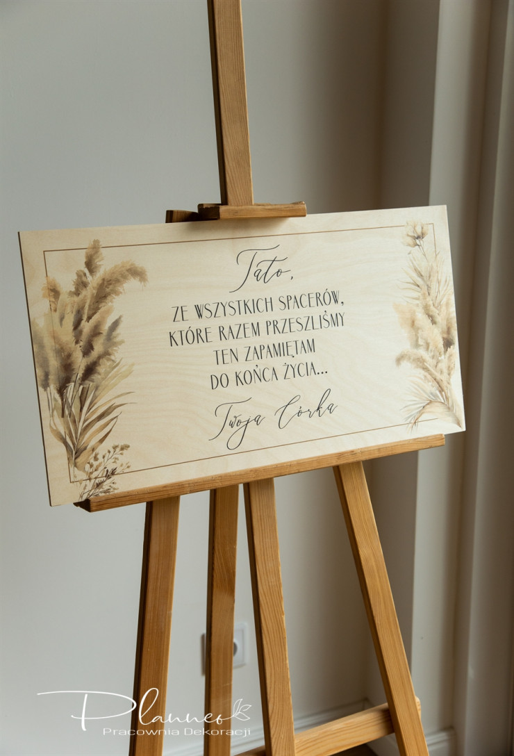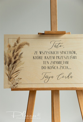 Wyjątkowa drukowana tablica wykonana z wysokiej jakości sklejki o wymiarach 6 mm lub plexi 3 mm. Zawiera tekst dla taty w drodze do ołtarza.
