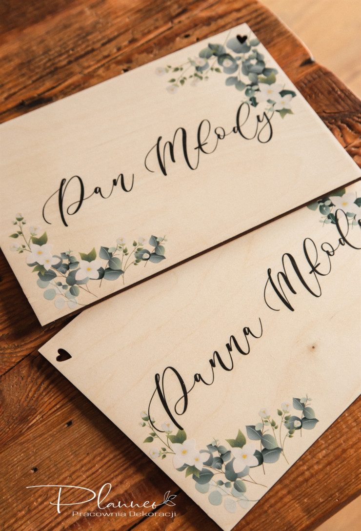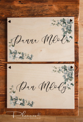 Piękne tabliczki z motywem Eukaliptusa do powieszenia na krzesłach pary młodej ale i nie tylko. Świetnie nadadzą się również do sesji zdjęciowych, dekoracji kościoła itp.