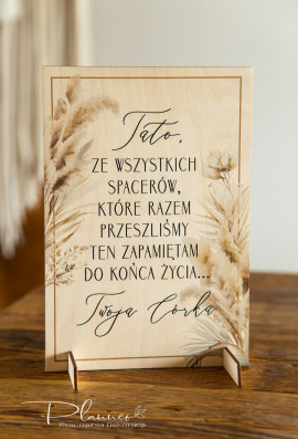 Wysokiej jakości materiały – Oferujemy możliwość wykonania tabliczki z różnych materiałów: sklejki, mlecznej plexi lub przezroczystej plexi. Każdy z nich nadaje inny charakter i może być dopasowany do stylu ceremonii. Dzięki trwałości tych tworzyw tabliczka będzie pięknie wyglądać nie tylko na żywo, ale też na zdjęciach. To również pamiątka na wiele lat.