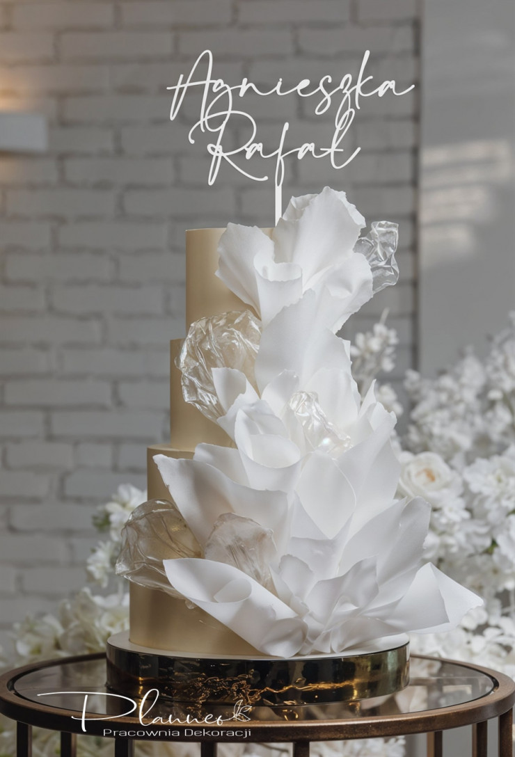Topper z imionami to znakomita ozdoba tortu ślubnego, która podkreśla osobisty charakter wydarzenia. Idealnie prezentuje się na zdjęciach oraz doskonale wpisuje się w romantyczny klimat uroczystości. Może również posłużyć jako dekoracja pamiątkowa, którą zachowasz na lata. Jego uniwersalność sprawia, że będzie pięknym akcentem na wielu przyjęciach.