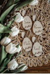 Uszy z imieniem to doskonały dodatek, który uświetni wielkanocne aranżacje i nada im indywidualnego charakteru. Ich uroczy kształt jajka z uszami królika idealnie współgra z wiosenną atmosferą Świąt, a personalizacja imieniem dodaje ciepła i bliskości. Możesz zawiesić je na gałązkach w wazonie, ułożyć na stole lub podarować jako upominek dla gości. To subtelna, ale wyrazista ozdoba, która podkreśli magię tych wyjątkowych dni.