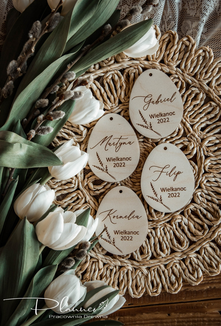 Jajko Wielkanocne to elegancka i subtelna dekoracja, która idealnie wpisuje się w świąteczny klimat. Wykonane ze sklejki o grubości 3 mm, zawiera starannie wygrawerowane imię, hasło "Wielkanoc" oraz rok, a także urokliwy wzór gałązki bazi. Dzięki naturalnemu wyglądowi doskonale komponuje się z innymi wielkanocnymi ozdobami. To doskonały wybór dla osób, które cenią sobie minimalistyczne i stylowe dodatki do świątecznego wystroju.
