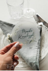 Wyjątkowa winietka z imieniem i nazwiskiem gościa - wykonana z wysokiej jakości plexi o grubości 0.5 mm idealnie ozdobi każde weselne przyjęcie! Posiadamy w ofercie również zawieszki na alkohol pasujące do winietek.